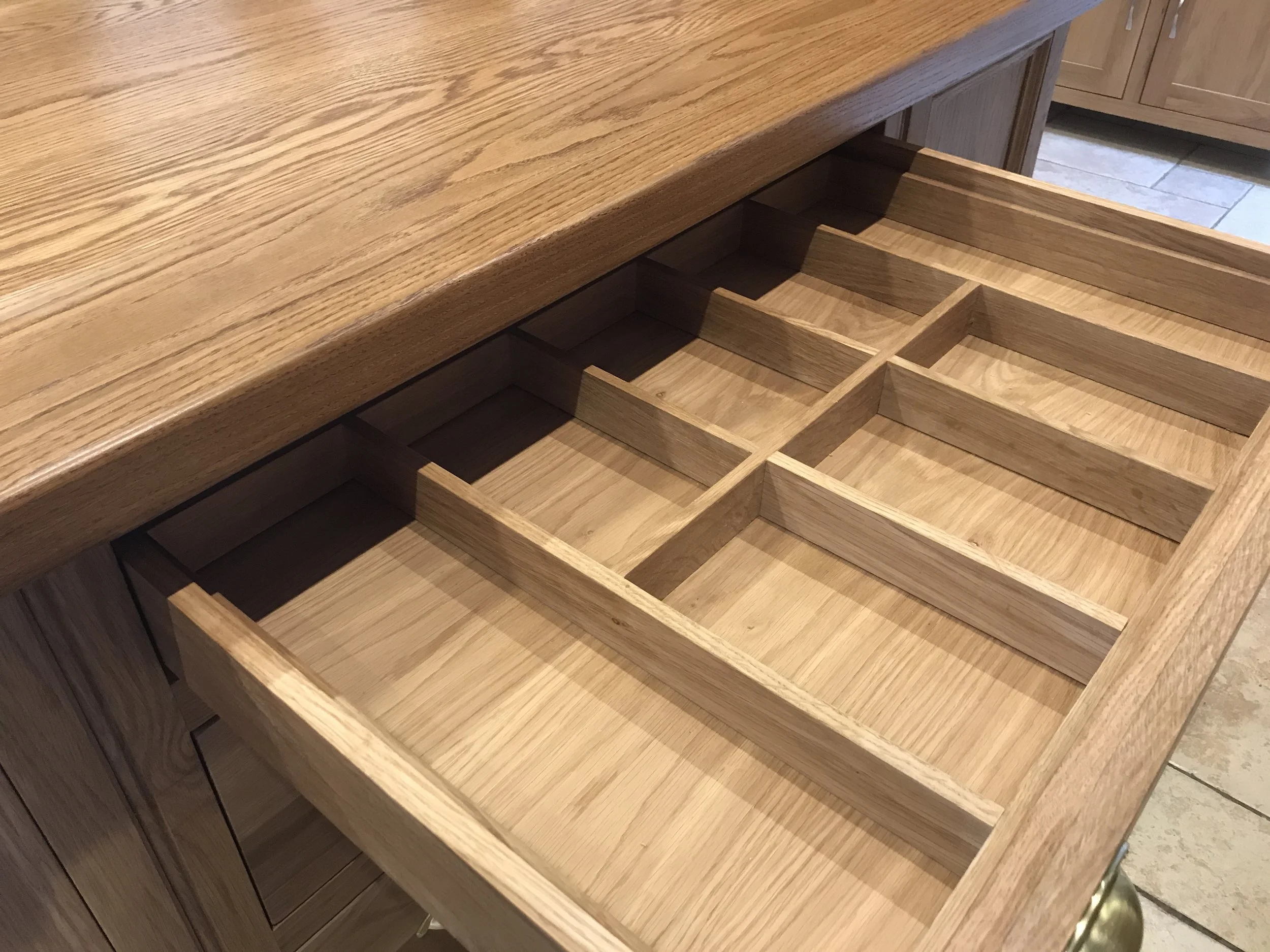 I like to get the kitchen fitted then make the inserts for the cutlery drawers so the folk of the house can choose what way they want it laid out.
