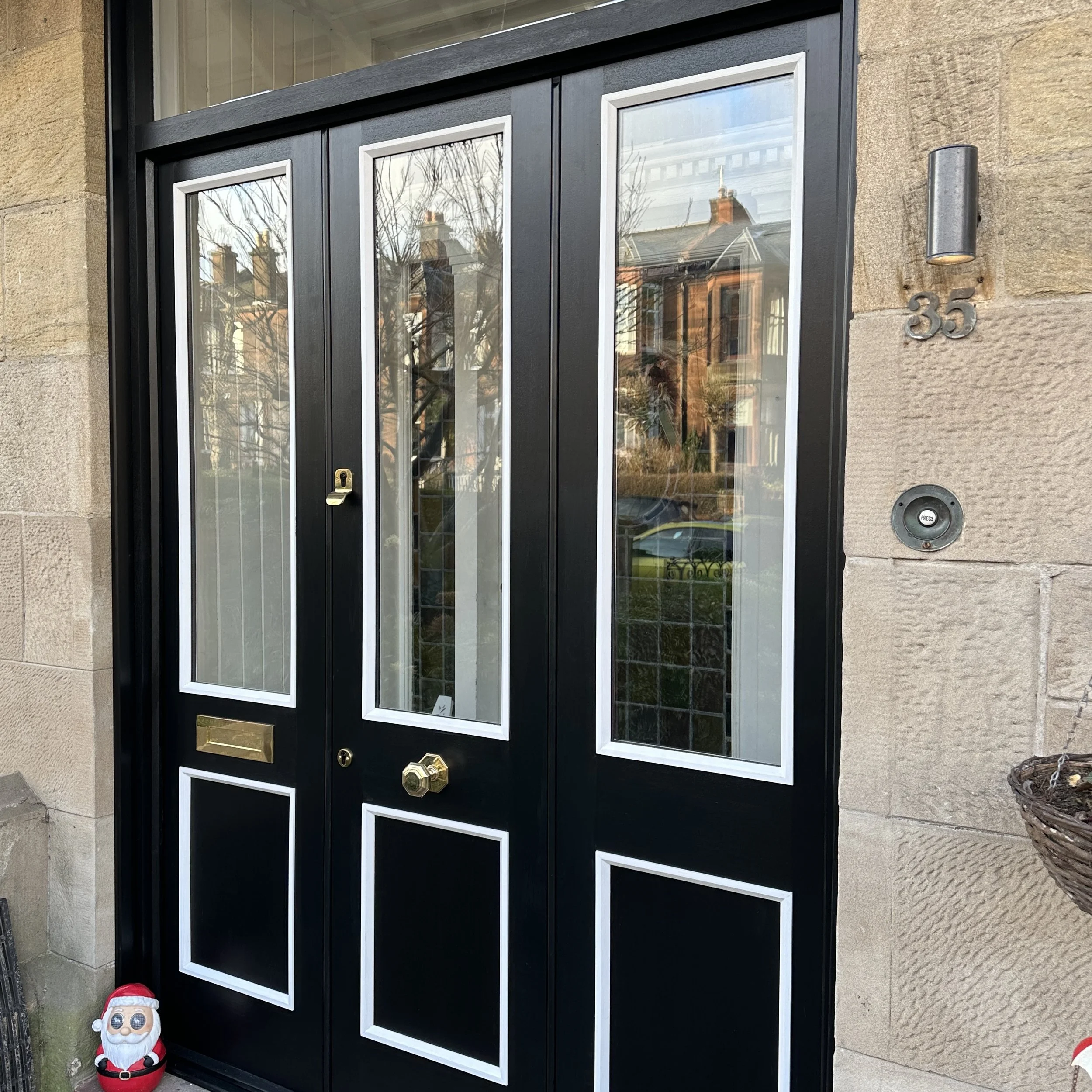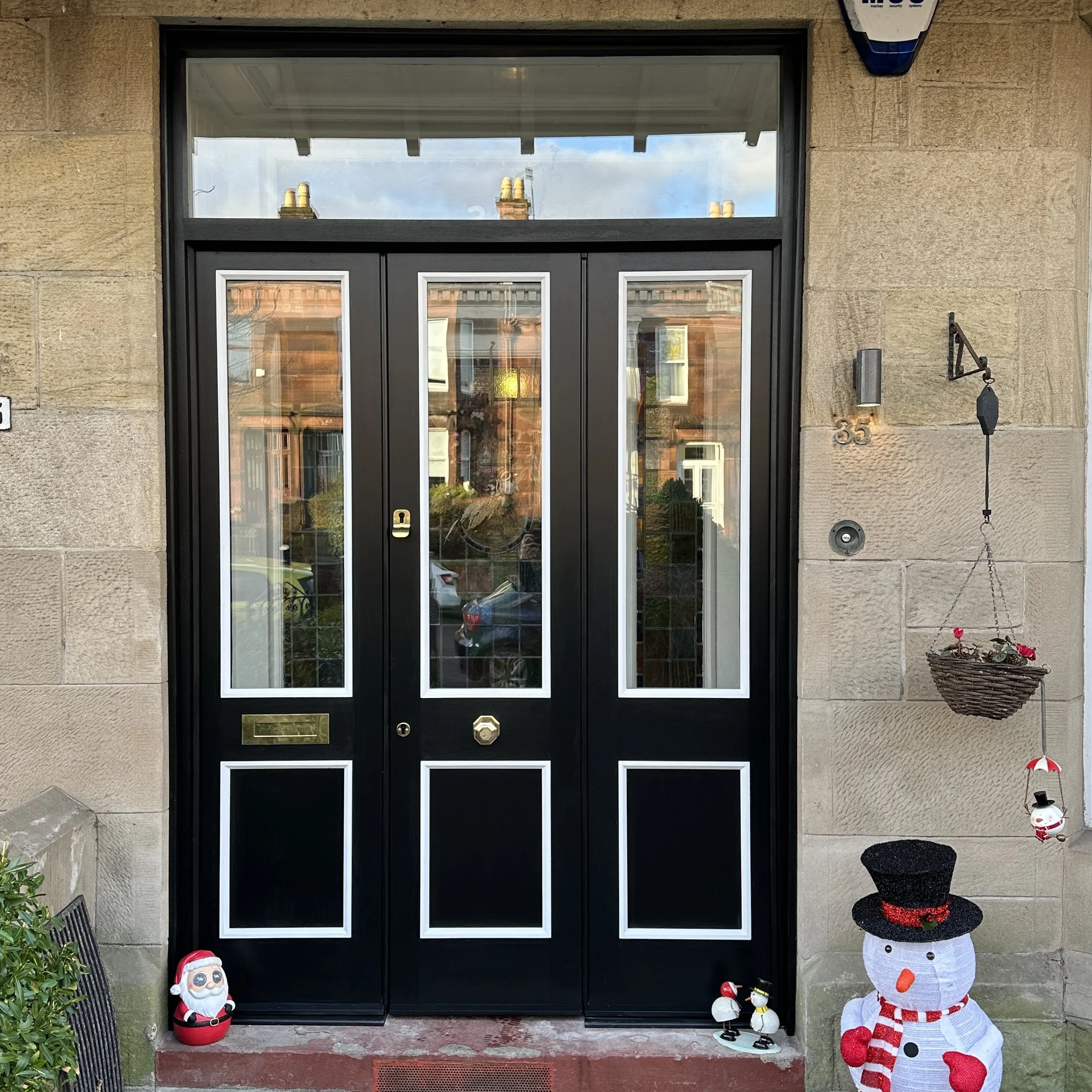 These doors were done in the West End of Glasgow. The ironmongery is polished brass from Jim Lawrence.