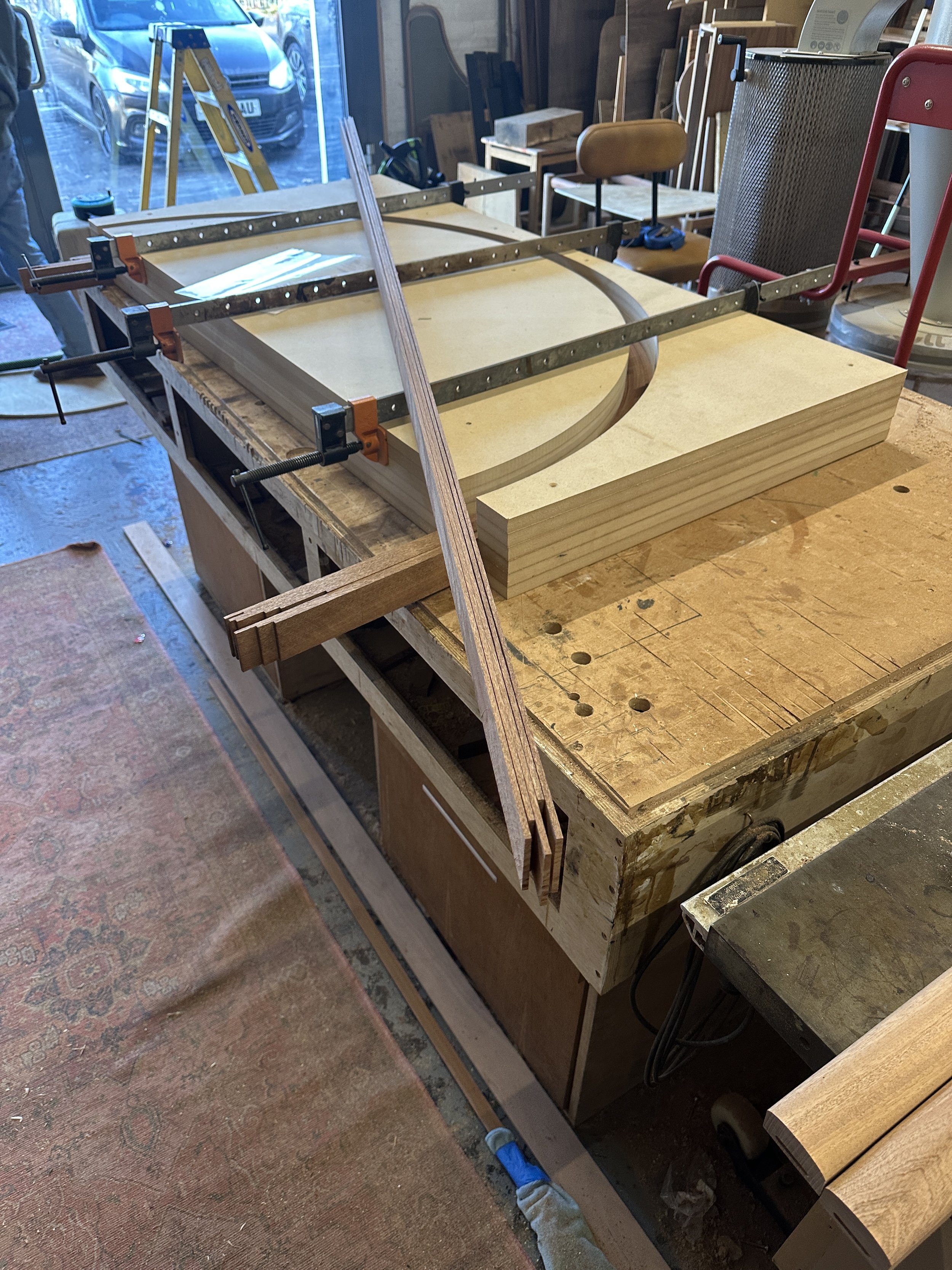 Here’s an arch top being made for a window/fanlight for a set of storm doors we’re doing.